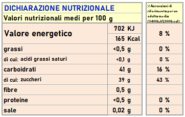 Composta multi uso perfetta da spalmare sul pane o su fette biscottate o per la preparazione di crostateValori nutrizionali